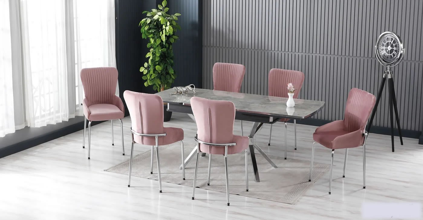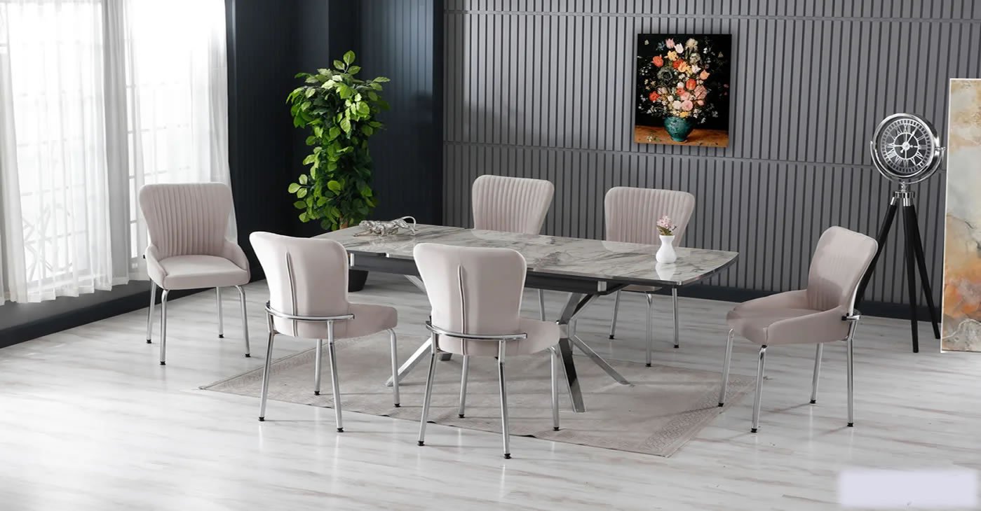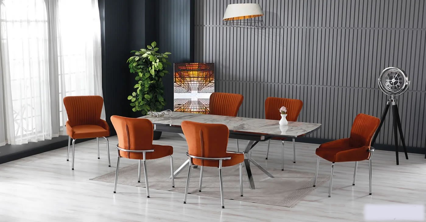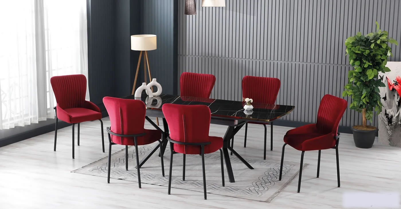 Ürünümüz: MDF Glossmax Tabla Masa, 6 Sandalye dir. Ürün Boyutu: Kapalı 80x130 CM - Açık 175x80 CM | Ürün malzeme detayları resimlerde mevcuttur. Silinebilir babyface kumaş, masa ve sandalye tüm renk seçenekleri mevcuttur. Sandalye ek istenirse adet fiyatı: 4.850 TL dir.