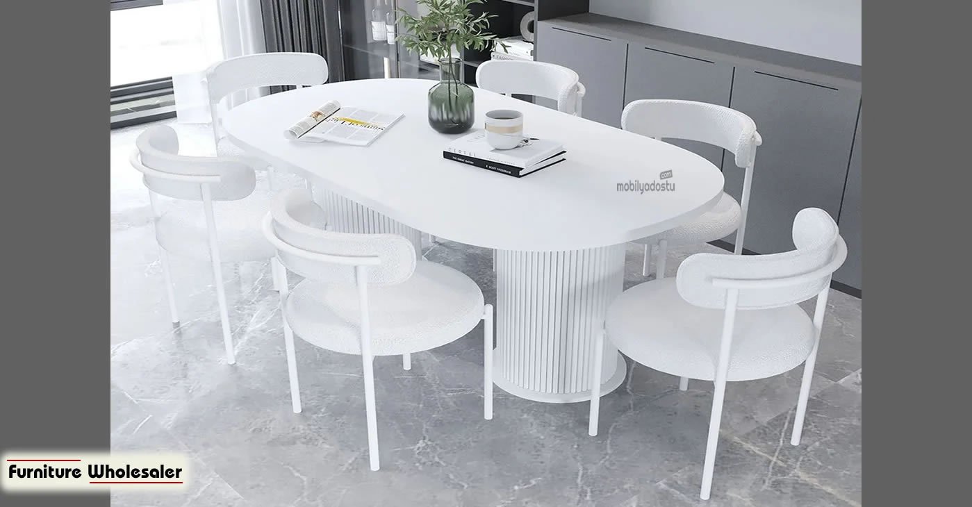 Ürünümüz 6 sandalye ve 1 masadan oluşan bir takımdır. Tüm kumaş renk seçenekleri mevcuttur. Masa ölçüsü 80 x 160 dır. | Ürün suntalam. | Ürün stok durumu mevcuttur.